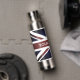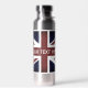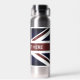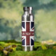 Drapeau anglais Union Jack bouteille d'eau isolée. Pratique pour les boissons chaudes et froides. Drapeau britannique vintage de Grande-Bretagne, Angleterre. Argent ou couleur personnalisée. Idéal pour le sport, la randonnée, le travail et plus encore. Utilisez pour le café, l'eau, le thé, etc.