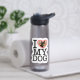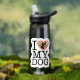 Ajoutez la photo de votre chien à cette bouteille d'eau photo "I love my dog".