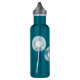 Des pissenlits blancs et des graines flottantes habillent cette bouteille d'eau.