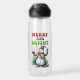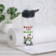 Un design de Noël amusant et gai présente un bonhomme de neige joyeux habillé d'un long manteau vert avec un chapeau dessus assorti, un foulard rouge et des mitaines. Il tient un verre de vin rouge d'une main et du vin blanc de l'autre. Le texte rouge et vert festif dit : "Joyeux et lumineux." Ce design est disponible sur une variété de produits, ce qui en fait un cadeau parfait pour les amateurs de vin.