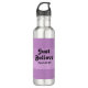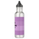 Cette mignonne bouteille d'eau présente des rayures violettes ainsi qu'un verset biblique de l'Évangile de Marc.