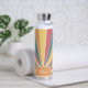Un design coloré et rétro rayé lever de soleil avec des couleurs pastel. Les rayures sont pastels, rouge, orange, jaune et bleu clair. Ajoutez votre nom ou votre monogramme pour en faire une bouteille d'eau personnelle qui se démarquera parmi vos amis. Le nom est un script tendance en blanc. Pour les utilisateurs avancés, vous pouvez aller dans la zone de conception personnalisée et modifier les couleurs du motif ou même la police.