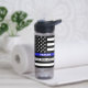 Bouteille d'eau : Ligne Bleue Mince et Drapeau Américain (USA) pour les services d'application / thème de la police avec personnalisation "Nom" et texte personnalisé.