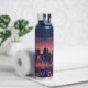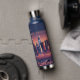 Bouteille d'eau de Los Angeles avec la ligne d'horizon et le paysage de Los Angeles, Californie. Couleurs bleu et orange. Design moderne. Texte personnalisé. Modifiez le texte sur la bouteille d'eau ou conservez-le tel quel. Utilisez le modèle pour créer votre propre bouteille d'eau de la ligne d'horizon de Los Angeles.