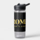 La bouteille d'eau Lux présente Rome, Italie latitude et longitude coordonnées de carte en polices or sur arrière - plan noir.