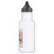 Une bouteille d'eau commémorative mariage sur le thème de la campagne. Un vieux lait rouillé peut avec une jolie fleur d'orange à côté. Blé et fleurs roses défraîchies dans l'arrière - plan dressé contre un panneau en bois. Personnalisez avec les noms du couple mariage et la date du mariage.
