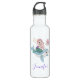 Une bouteille d'eau personnalisée avec une adorable illustration. Conçu avec une jolie fille de sirène chevauchant un joyeux dauphin. Un petit ami de méduse les accompagne. Décoré de petites taches de parties scintillant en faux or.