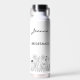 Celebrate her special role with understated elegance. This minimalist wildflower water bottle features a delicate floral illustration paired with modern typography that proudly reads Bridesmaid. Perfect for wedding day prep, bridal showers, or as a thoughtful keepsake, this reusable bottle keeps drinks cold or hot for hours. Lightweight, durable, and easy to personalize—add her name or the wedding date to make it truly one-of-a-kind.