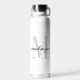Add a touch of modern elegance to your routine with this personalized monogram water bottle design featuring a large initial and name in script. Perfect for yourself or as a thoughtful custom gift. Created by Simply Farmhouse Press.