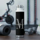 Add a touch of modern elegance to your routine with this personalized monogram water bottle design featuring a large initial and name in script. Perfect for yourself or as a thoughtful custom gift. Created by Simply Farmhouse Press.