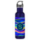 Bouteille D'eau Monogramme bleu Cool Abstrait de bandes ondulées