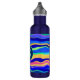 Bouteille d'eau couleur ondulée rayée personnalisée en bleu et vert principalement.
