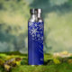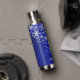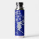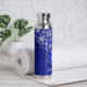 Voici la bouteille de boisson parfaite pour les journées de ski alpin! Il est entouré d'un skieur gris argenté avec une cascade de jolis flocons d'argent. En bas à gauche se trouve votre monogramme, également en argent. L'image et le texte sont placés sur un vif arrière - plan de dégradé bleu roi.