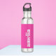 Bouteille d'eau mignonne avec votre nom monogramme ou vos initiales dans une police blanche en gras populaire sur un arrière - plan rose néon chaud. Vous pouvez ajuster la taille du texte dans l'outil de conception pour des noms plus courts ou plus longs.