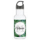Une bouteille d'eau personnalisée avec un nom et un monogramme initial à l'intérieur d'un cercle blanc. Arrière - plan est un motif de feuilles philodendrons exotiques tropicaux en vert. Image numérique peinte à la main. Un soupçon de rose dans l'arrière - plan.