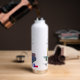 A quality, water bottle with popup straw and a distinctive design. It features a Texas map outline covered with typical Texas images (photos). Alongside is an artistic image of a Longhorn steer and a small image of the Texas flag. Above your name is a single gold star representative of the Lone Star State. The design appears on two "sides" of the bottle. Personalize with your name. The text is easily changed by using the template. For other changes (different type font, color, size or placement) select "Personalize this template" then select "Edit using Design Tool." You can also use the Design Tool to resize, rearrange or remove any of the design elements. Other mug styles also available -- see Options. You may need to use the Design Tool to get the design to fit properly on a different size.