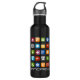 Bouteille d'eau noire avec icônes d'application informatique colorées et boutons de médias sociaux. Personnalisez avec votre propre nom ou texte. Cadeaux cool pour Anniversaire, Noël et plus.