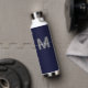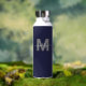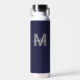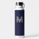 Créez Votre Propre Marine Personnalisée Blue Initial Script Nom Bouteille d'eau Monogram. Cette bouteille d'eau design et moderne dispose d'un arrière - plan bleu marine profond pour un look élégant et polyvalent. Une initiale douce et grise se trouve au centre avec une finition propre et plate, tandis qu'un nom de script fluide blanc chevauche la lettre pour une touche personnalisée. La conception monogramme personnalisée apparaît de chaque côté, ce qui facilite l'affichage de votre style de n'importe quel angle. Parfait pour les étudiants, les enseignants, les sportifs ou les sportifs, cette bouteille d'eau ajoute un accent fonctionnel mais poli à votre quotidien. Idéal pour les anniversaires, les vacances ou l’usage quotidien, c’est un cadeau réfléchi qui allie fonctionnalité et design intemporel.