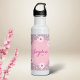 Custom daisy water bottle in pastel pink and dark pink, on a dotted background.