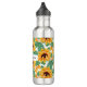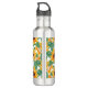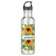 Bouteilles d'eau avec un arrière - plan abstrait cool. Les touches de brosse rouge foncé et violet créent un design audacieux et moderne. Un rectangle superposé avec un nom personnalisé à l'intérieur.
