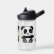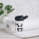 Trois adorables petits pandas assis les uns à côté des autres. Un heureux panda porte un tee - shirt avec "I heart panda" écrit dessus. Un autre propose un bâton de bambou vert à un troisième panda qui s'est endormi.