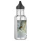 Une bouteille d'eau personnalisée avec une photo sereine représentant un beau cheval blanc avec un petit oiseau reposant sur le cou. Une chute de neige magique en hiver donne à l'image une qualité mystique merveilleuse.