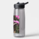 Pour les amateurs de papillons et de nature ! Restez trempés partout où vous allez avec cette bouteille d'eau en plastique claire qui présente l'image d'un papillon à queue blanche, communément appelé la queue de soudure pallide, et se reposant sur des petites fleurs roses Clove. Sélectionnez la taille et la couleur de votre bouteille d'eau.