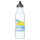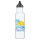 Une bouteille d'eau sportive avec un design amusant de pickleball "soleil de pickleball" encadrée par un palmier tropical et des vagues de l'océan. Ajoutez deux lignes de texte personnalisé à personnaliser. Offre un grand cadeau à n'importe quel joueur de pickleball, club ou team organisateur, coéquipier ou instructeur.