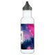 Bouteille d'eau avec un beau design abstrait en rose et bleu. Des étoiles blanches parsemèrent cette image du cosmos. Trippy et cool.