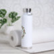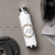 This elegant white metal water bottle has a hand drawn floral wreath of pink roses with green and cream leaves. Centered inside the wreath is your choice of initials, making it a perfect gift or everyday accessory.