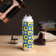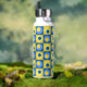 Bleu Couleurs Jaunes Carré Dot Bouteille d'eau Motif géométrique pour utilisation chaude ou froide. A l'origine, il a été conçu pour une collection mariage que j'ai. J'ai tellement aimé le motif que je pensais que ce serait génial sur une variété d'articles. Je pense que ça fait une bouteille d'eau amusante.