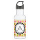 Une bouteille d'eau avec un motif sucré en été avec des popsicles et des cônes de crème glacée dans des aquarelles colorées et vibrantes. Écrivez votre monogramme personnalisé dans un cadre rond avec une forme de fleur fantaisiste.