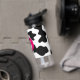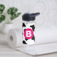 Quirky cool black and white cow spots pattern with bold hot pink monogram.