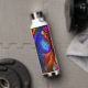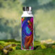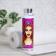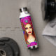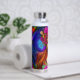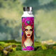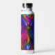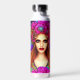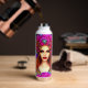 C'est une belle bouteille d'eau avec une reine fleur de fée aux couleurs vives de rose, violet et blues.