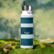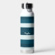 Three-color design with rhythmic stripes. Horizontal lines in three colors for your sports water bottle. Add your name or text. This variant is the sea blue scheme in Prussian blue, midnight green and azureish white.