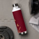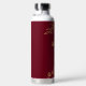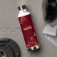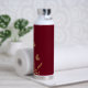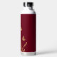 Bouteille d'eau simple unique avec des fleurs et des papillons dorés romantiques et élégants sur fond bordeaux