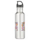 Mignonne, amusante, colorée, de style rétro féminin Halloween Fantômes bouteille d'eau de saison Éffrayante avec des fantômes en lunettes de soleil et casquettes sorcières, citrouille, fleurs et crânes, et texte de melon, lavande, rose et turquoise qui dit saison Éffrayante!
