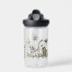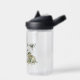 Scène Dinosaure préhistorique, bouteille d'eau personnalisée. Fonctionnalités, ligne de texte modèle pour le nom dans la coordination couleur verte.