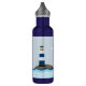 Une bouteille d'eau avec une scène nautique d'un voilier naviguant dans un océan ondulé avec une montgolfière au-dessus flottant passait devant un phare.