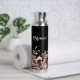 Bouteille D'eau Script de nom personnalisé noir beige fleur sauvag