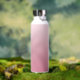 Une bouteille d'eau personnalisée en acier inoxydable dans un design moderne en dégradé rose doux. La police de script d'écriture à la mode ajoute une touche unique lors de l'ajout de votre nom.