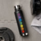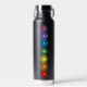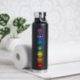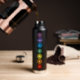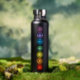 Un design graphique des sept chakras sur une bouteille d'eau.