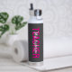 A simple modern grey and pink teacher water bottle with the words, "TEACHER" overlayed by the teachers name. Personalize it with your teachers name for a fun teacher gift. Designed for you by Blackberry Boulevard.