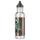Bouteille D'eau Steampunk Clock and Turquoise Roses on Striped