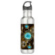 Turquoise lenses with antique watch with brass gears and golden keys on rusty, brown background. Steampunk style.