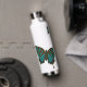 Ce papillon à queue blanche présente des motifs amérindiens inspirés par des motifs sur des paniers, des couvertures et des bijoux qui ornent ses ailes et son corps dans des tons marron, turquoise et noir.