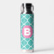 Bouteille D'eau Teal Quatrefoil Pattern Custom Pink Monogram