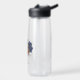 Magnifique ton terre avec votre nom bouteille d'eau avec des fleurs terracotta et bleu marine avec des feuilles vertes .