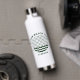 Avant : Logo vert rond sur bouteille blanche. Retour : "L'eau est la seule boisson pour une personne sage." —Thoreau