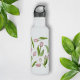 Le design du produit présente un motif de fleurs de tulipes roses. Cette illustration botanique avec monogramme personnalisé fait une bouteille d'eau chic et unique moderne - Idée cadeau pour anniversaire, Pâques, fête des mères, mariage et plus encore !